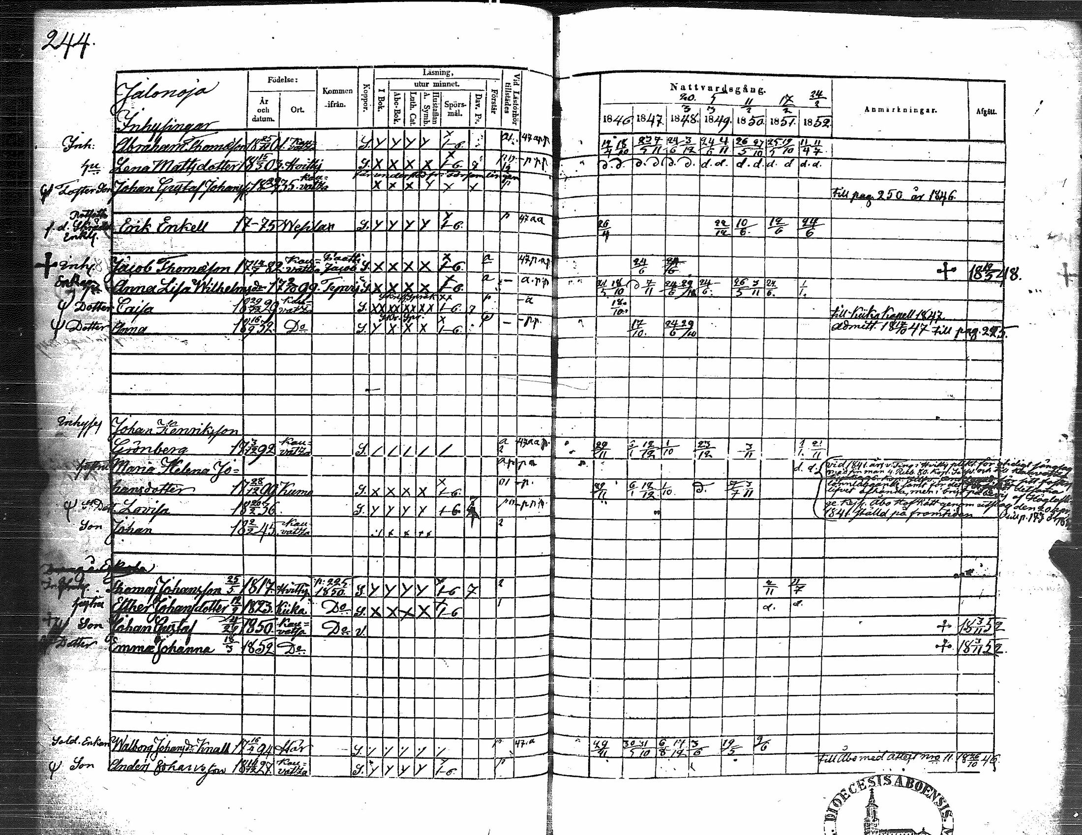 Erik Martinpoika Enckell (isoäitini isoisän isoisä) syntyi Tottijärvellä 13.5.1775. Vuodesta 1797 Erik lähtien hänet kirjattiin nimellä ja ammattinimikkeellä kylänräätäli (sockenskrädd) Erik Enkell Suomen Asutuksen Yleisluetteloon. Hänen syntymäkotinsa sijaitsi Vesilahteen silloin kuuluneen Tottijärven torpparipitäjän Jokipohjan kylän Yrjö Pelttarin (Erikin äidin veli) torpan mailla. Torppa oli lohkottu Laukon kartanon omistukseen kuuluneen Tottijärven Säterikartanon maista.